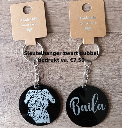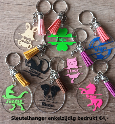 •Sleutelhanger dubbelzijdig bedrukt va. €7,50