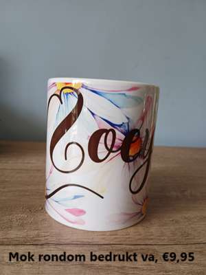 •Mok enkelzijdig bedrukt va. €8,95